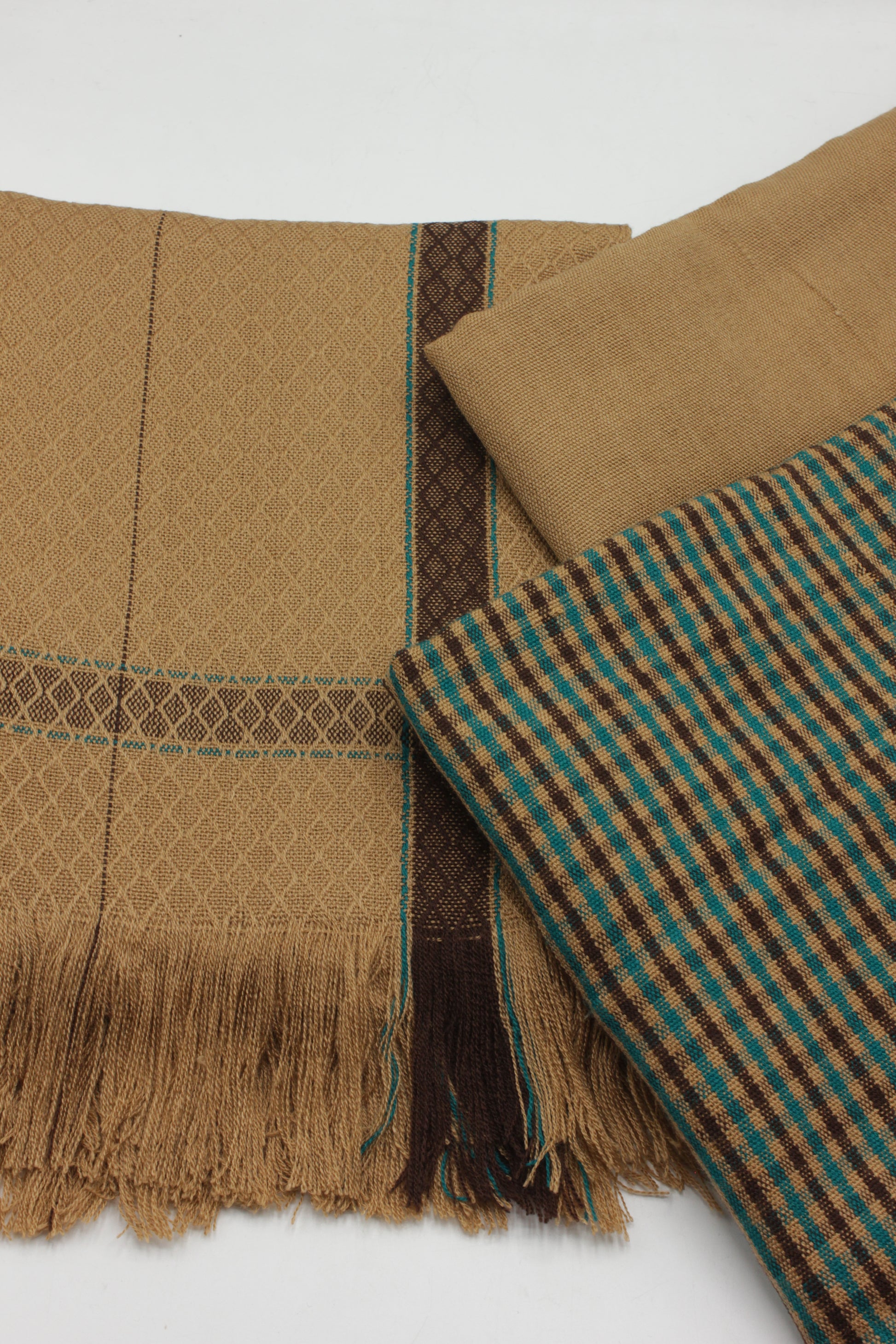 PREMIUM QUALITY MUSTARD WITH GREEN PATTERN UNSTITCHED PURE WOOLEN SUIT FOR WOMEN