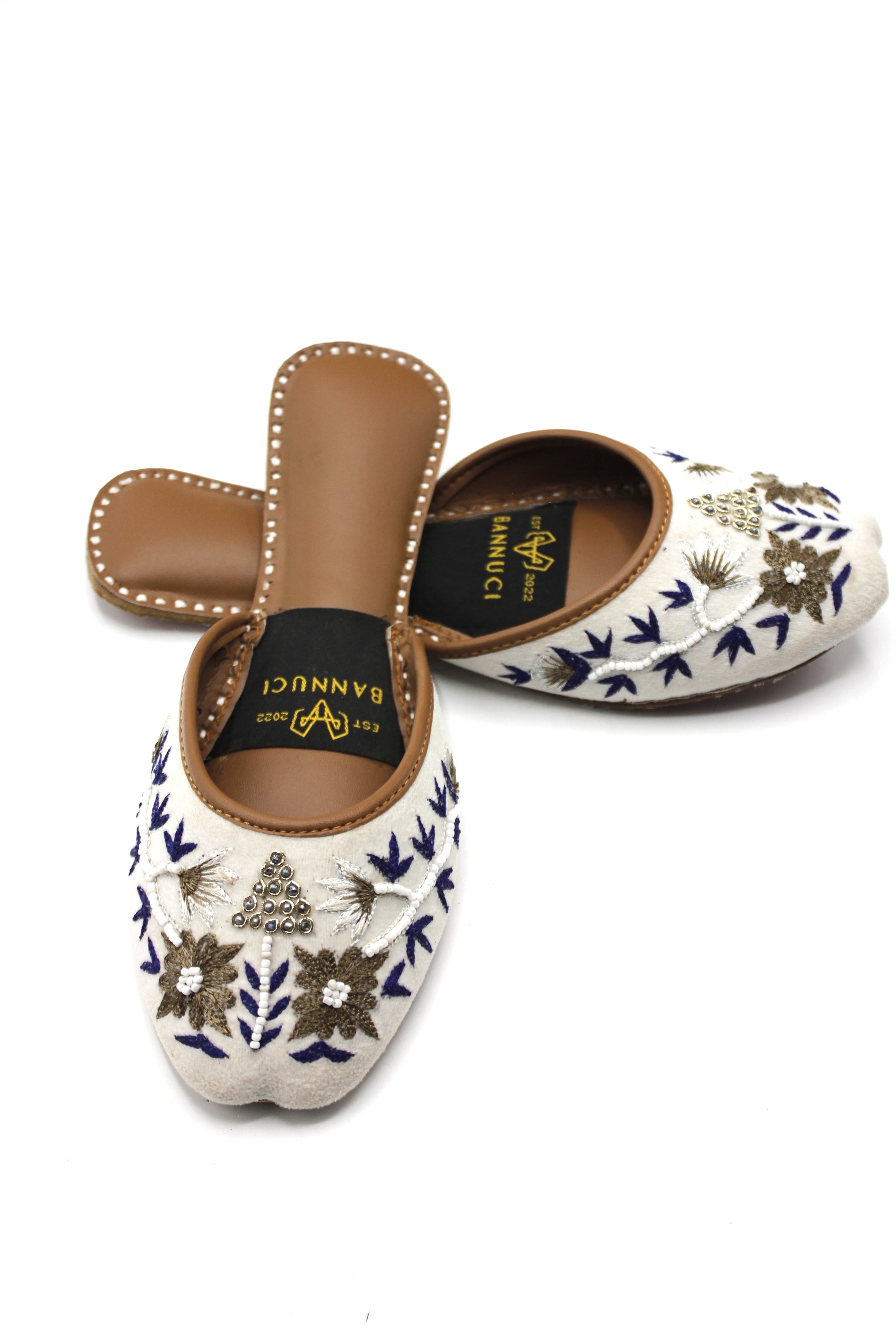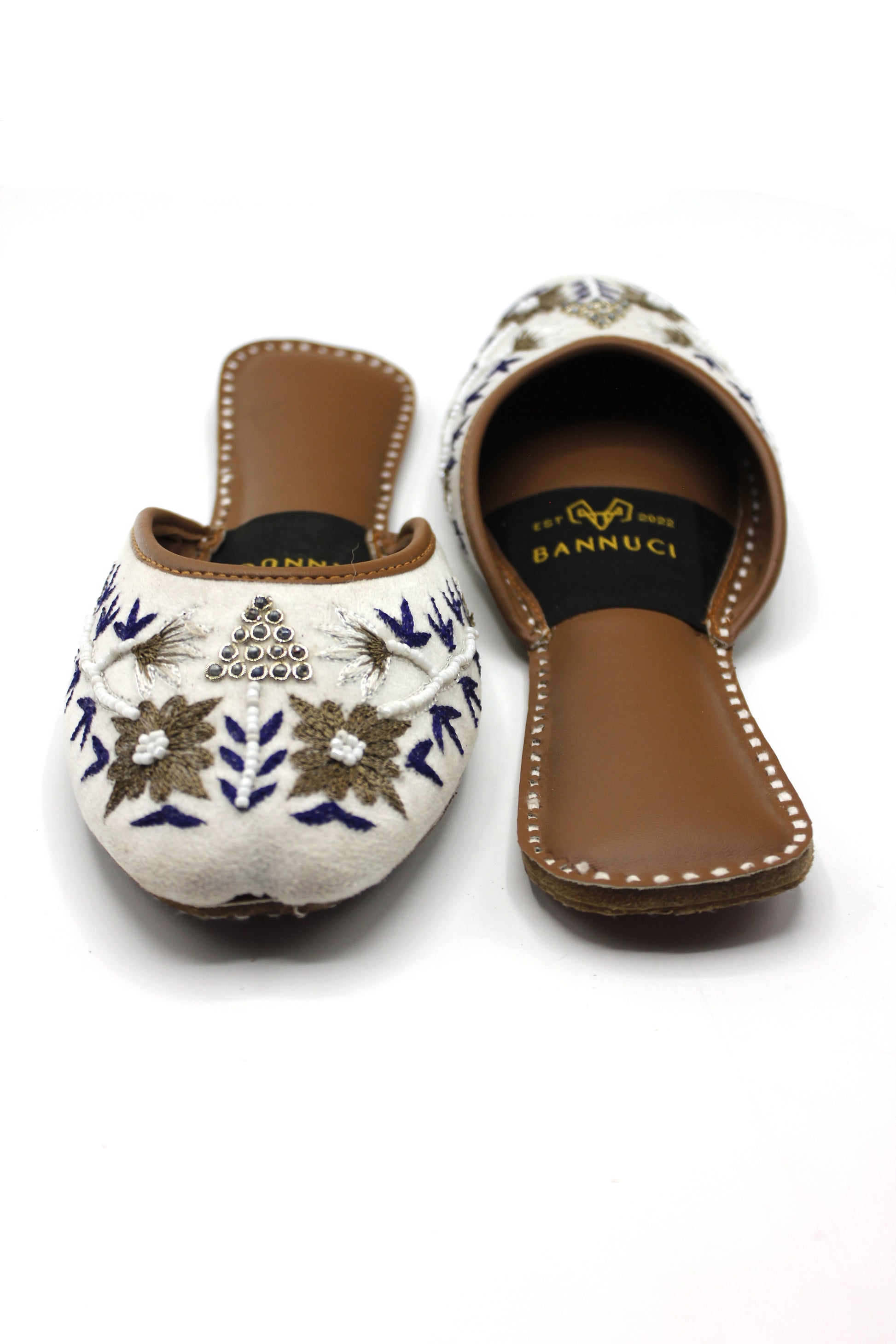 - Our Embroidered Khussas features a padded insole, easy to wear, and a Leather sole. You can wear this Embroidered Khussas with any outfit and impress everyone with your fashion sense.