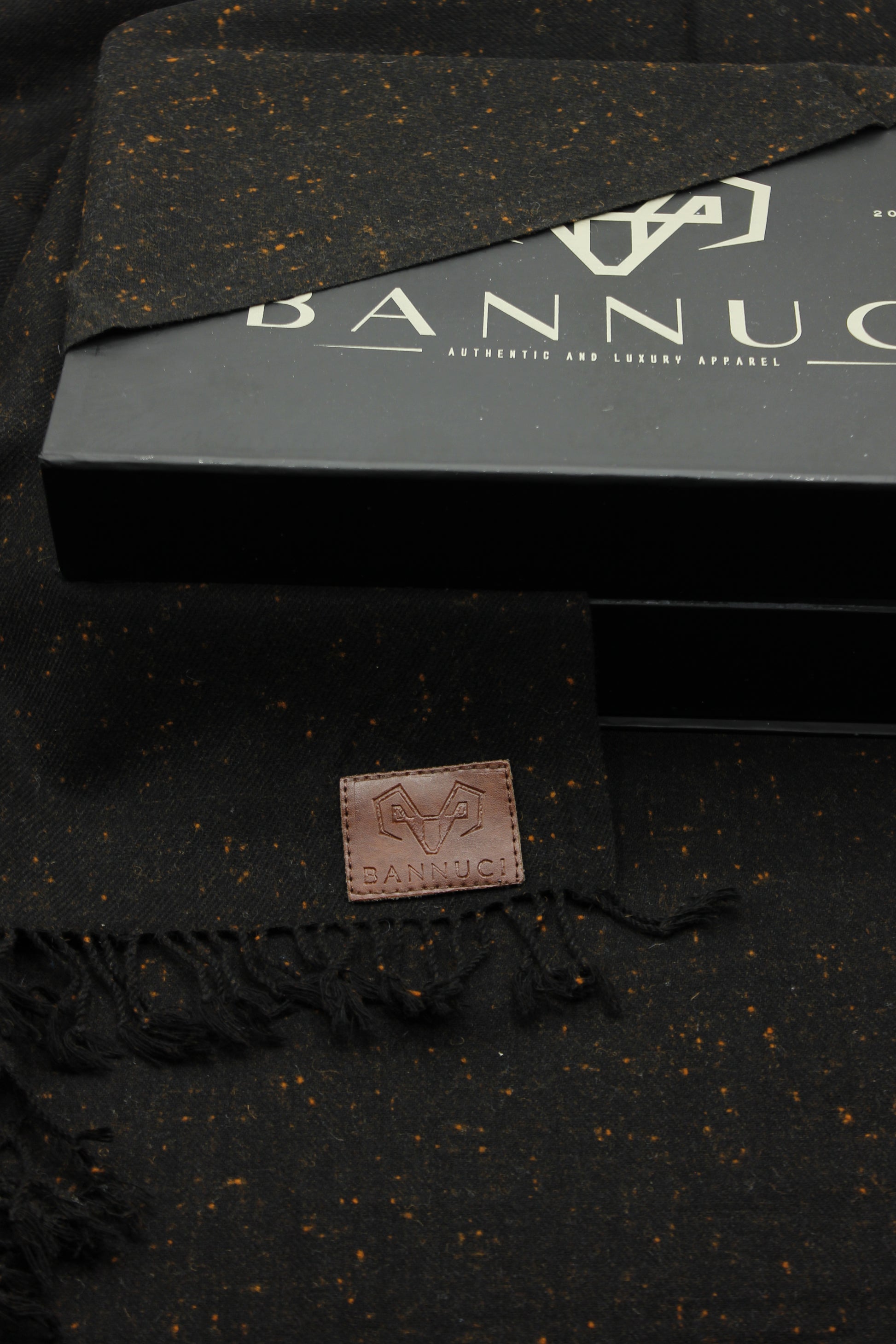 Premium Quality Black Orange Dotted Woolen Blend Shawl
