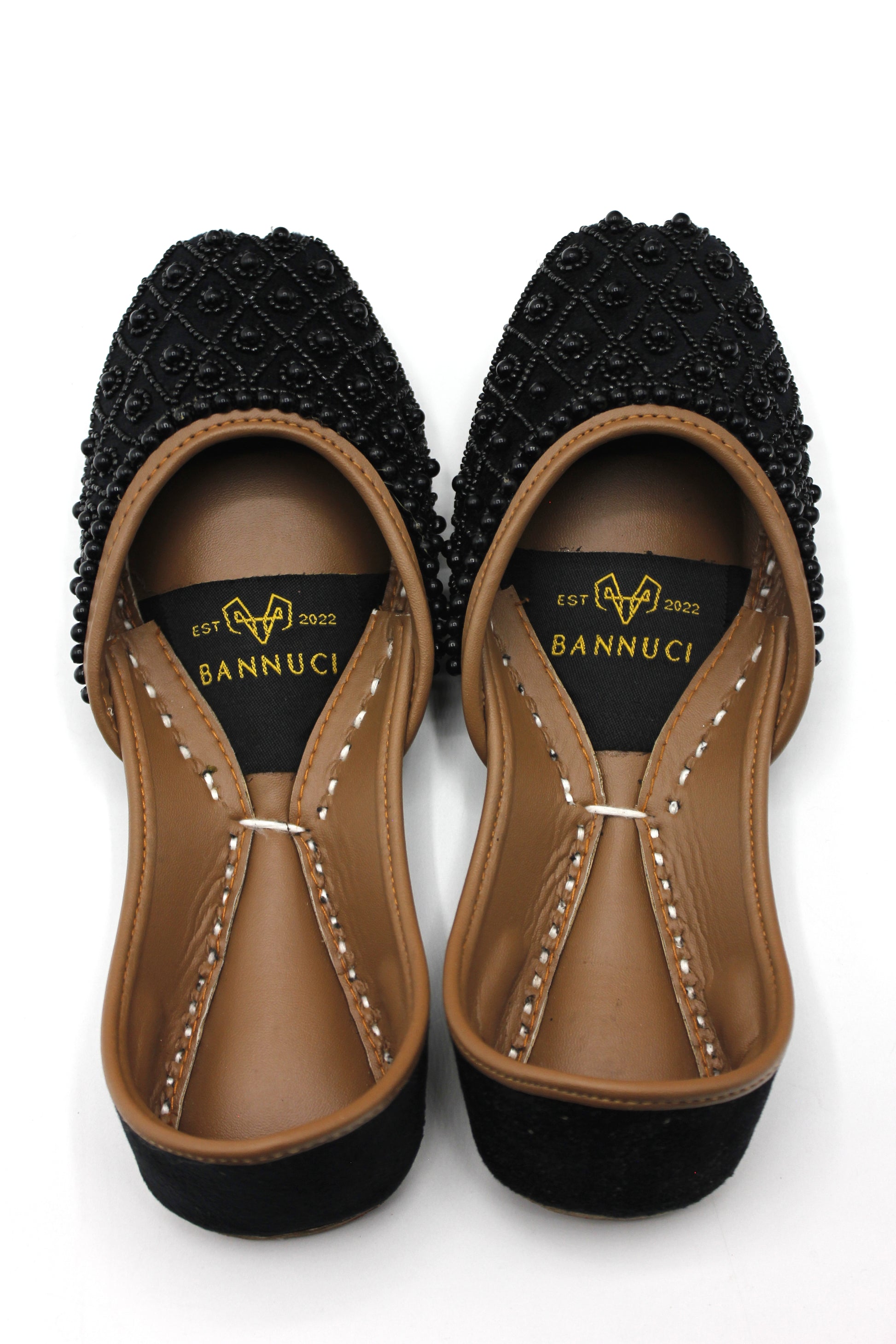 - For a Gentlelady and sophisticated look, try our Pearl Embellished Leather Khussas. This Embroidered Khussas online is made from soft leather and Leather sole, with a simple and elegant design. This Embroidered Khussas footwear is ideal for formal events, weddings, and celebrations