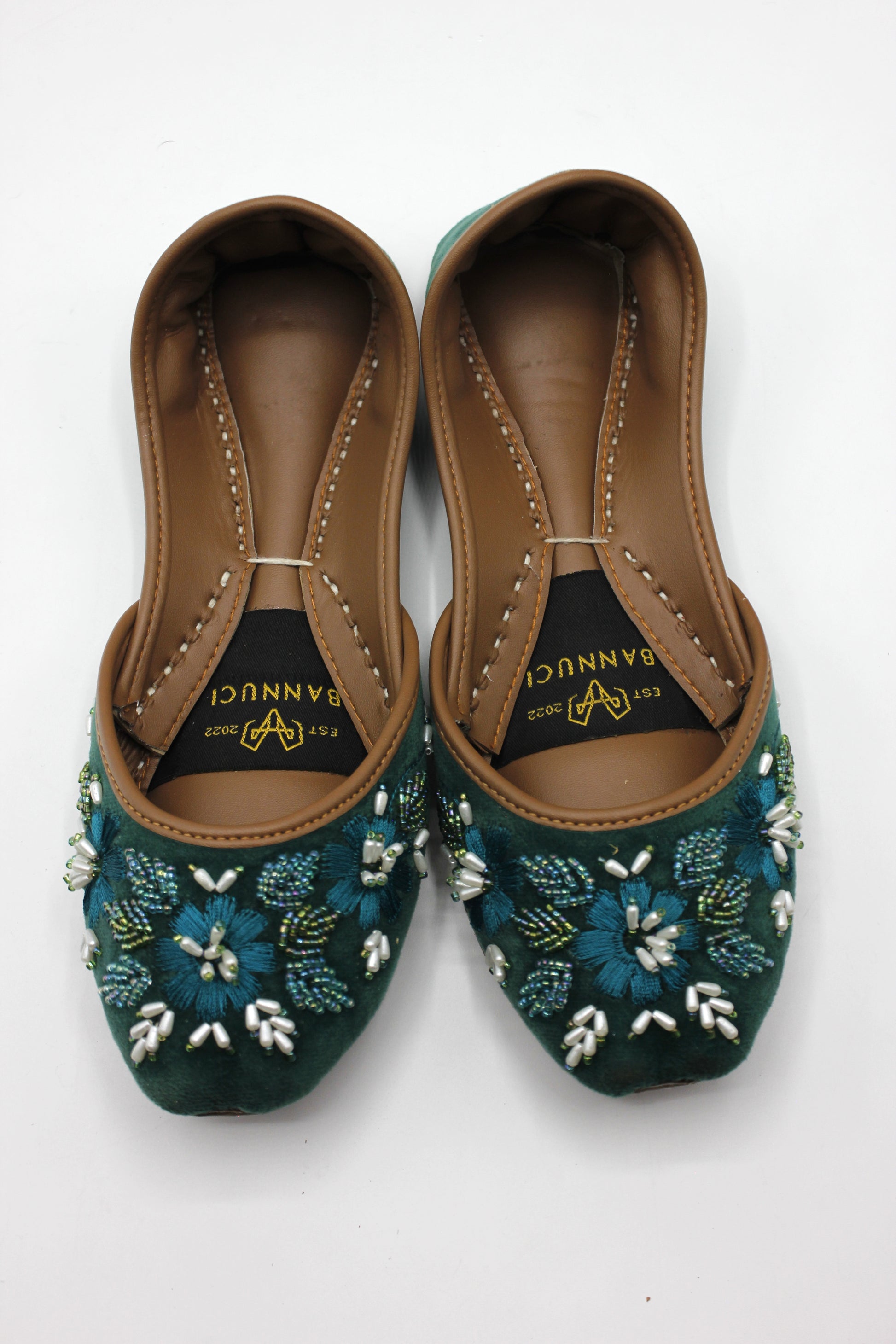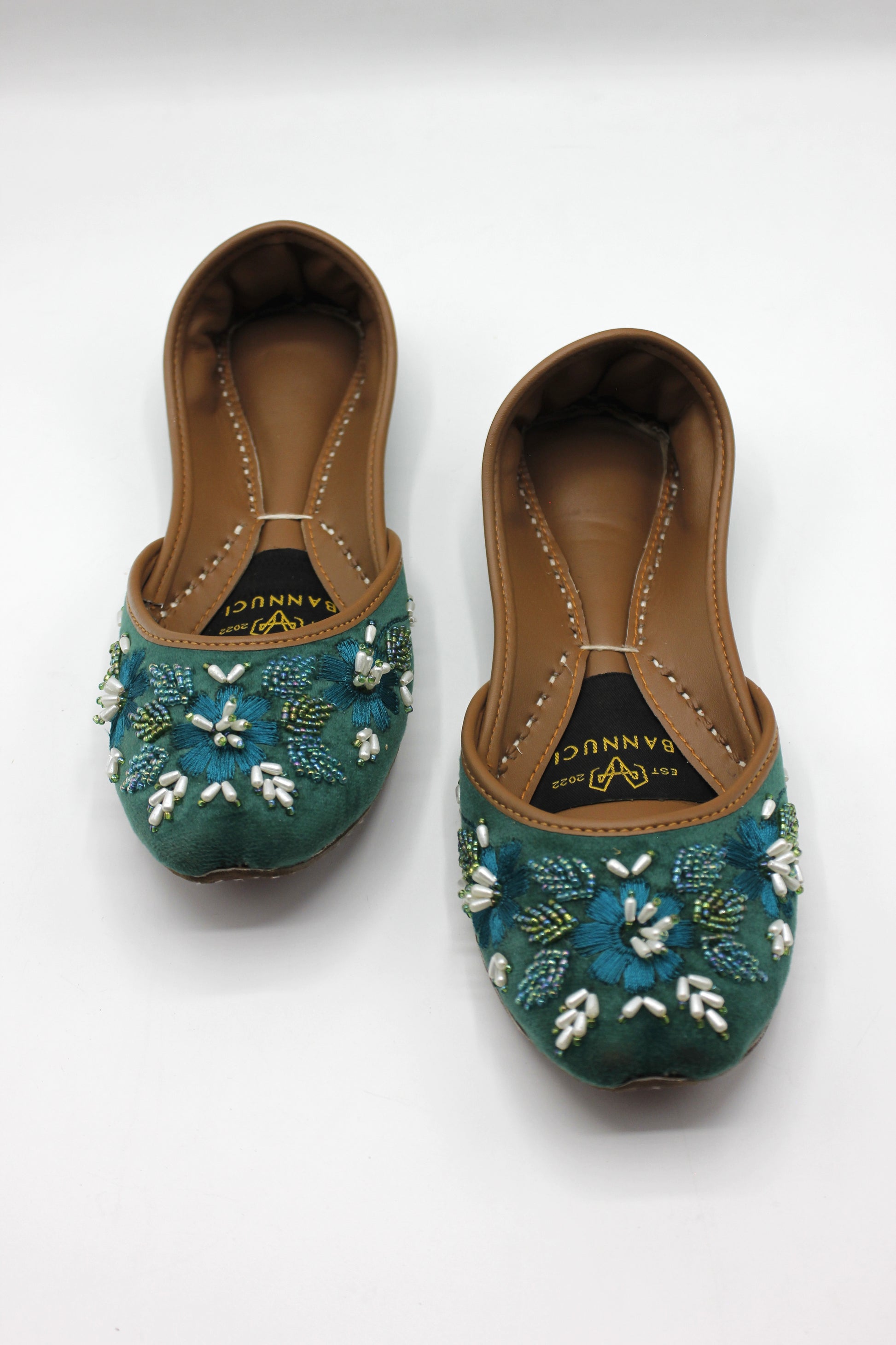 - Our Embroidered Khussas features a padded insole, easy to wear, and a Leather sole. You can wear this Embroidered Khussas with any outfit and impress everyone with your fashion sense.