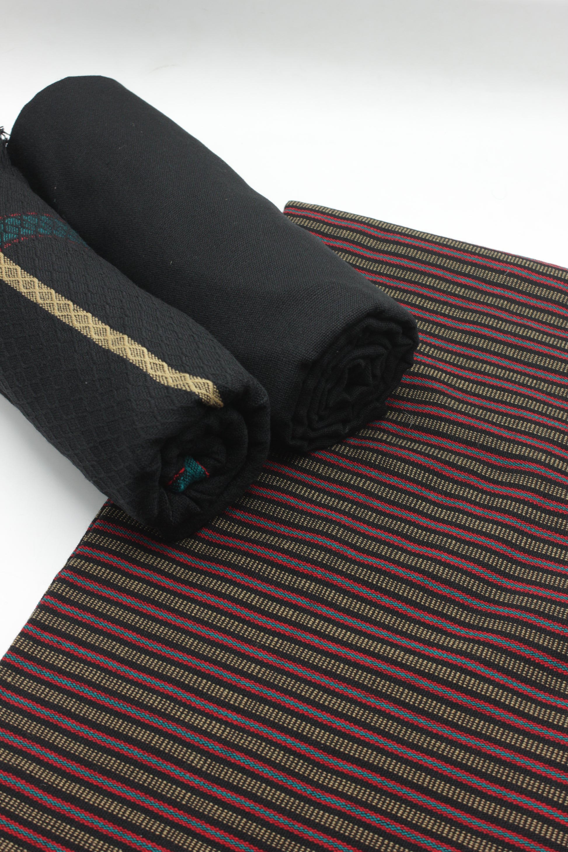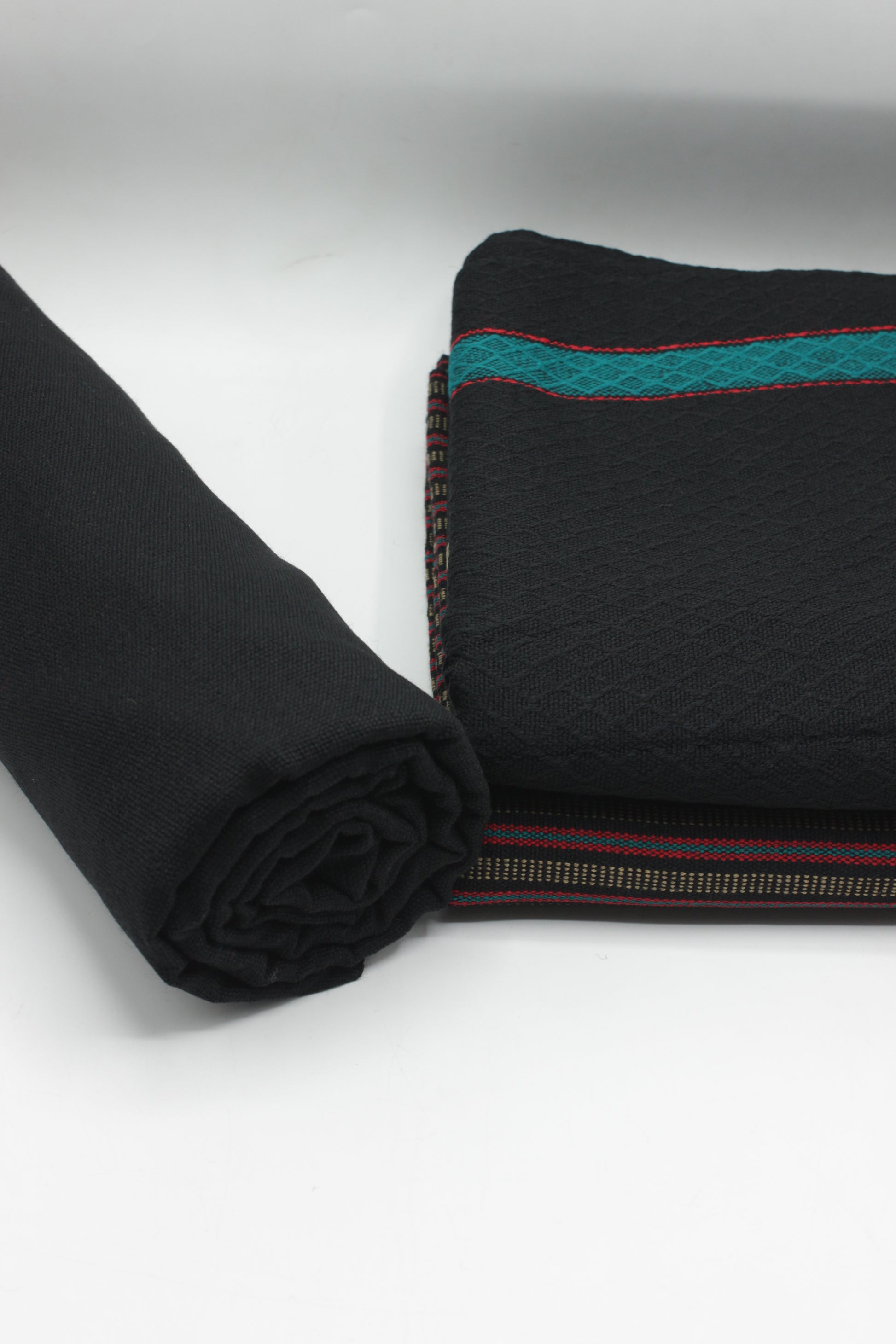 PREMIUM QUALITY BLACK WITH RED PATTERN UNSTITCHED PURE WOOLEN SUIT FOR WOMEN
