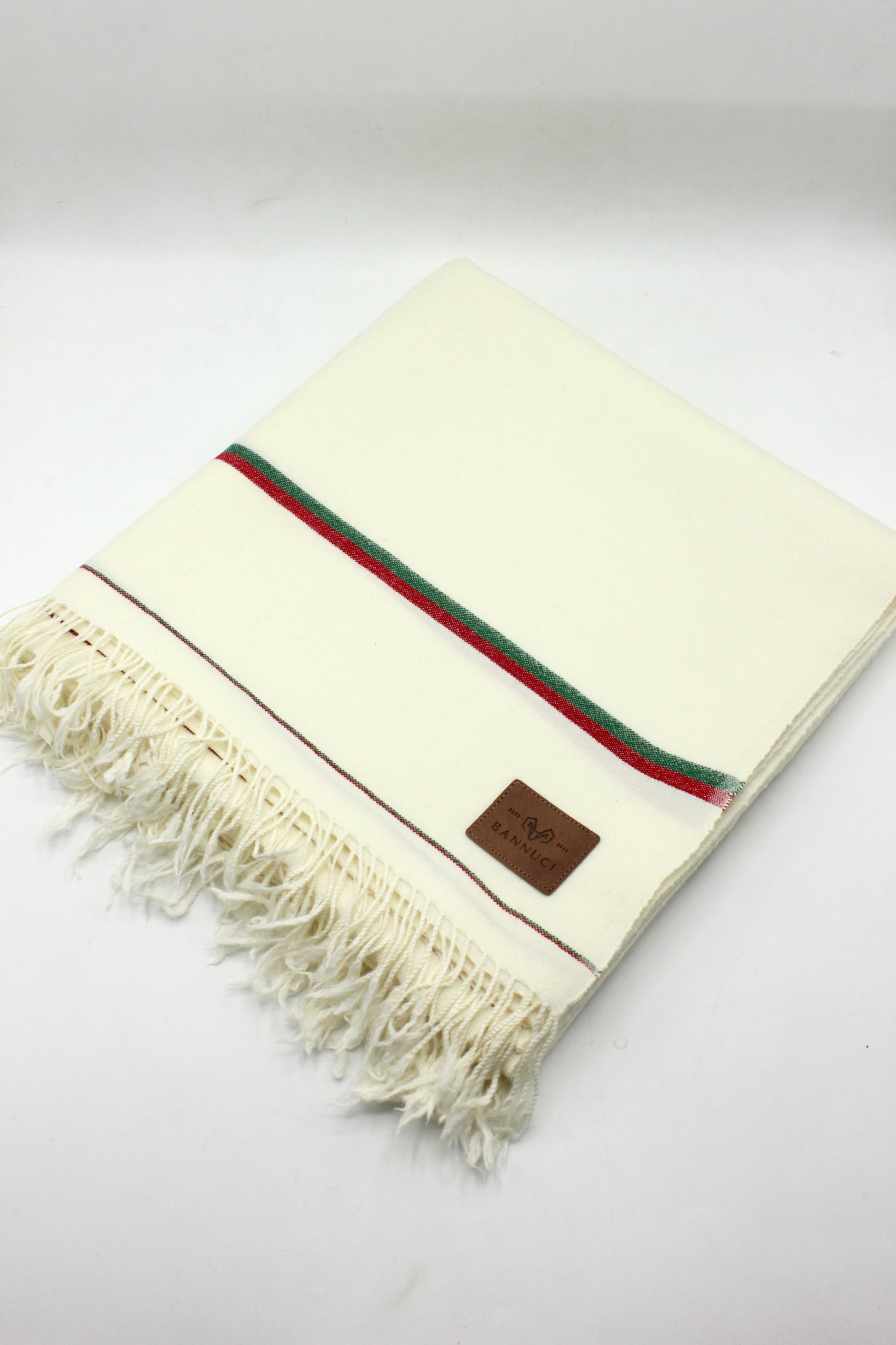 Premium Quality Double Fiber PTI Striped Off White Pure Woolen Shawl