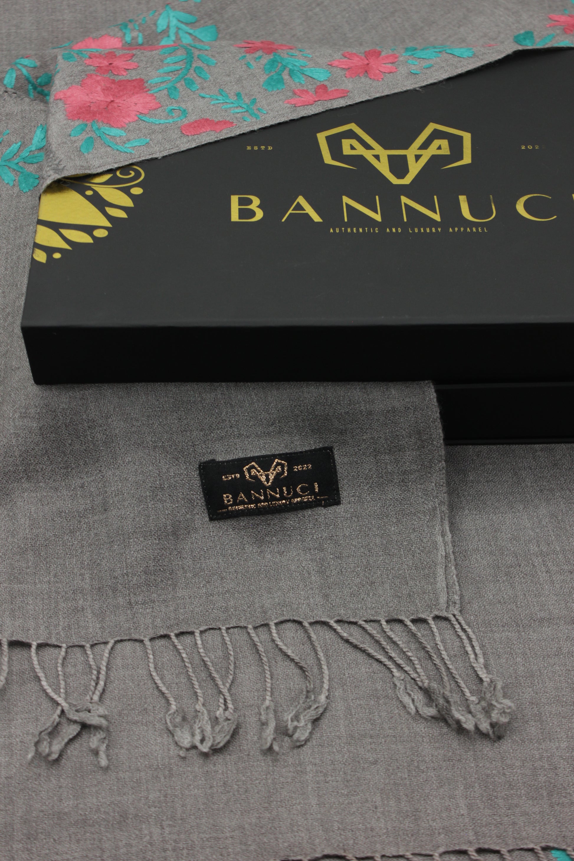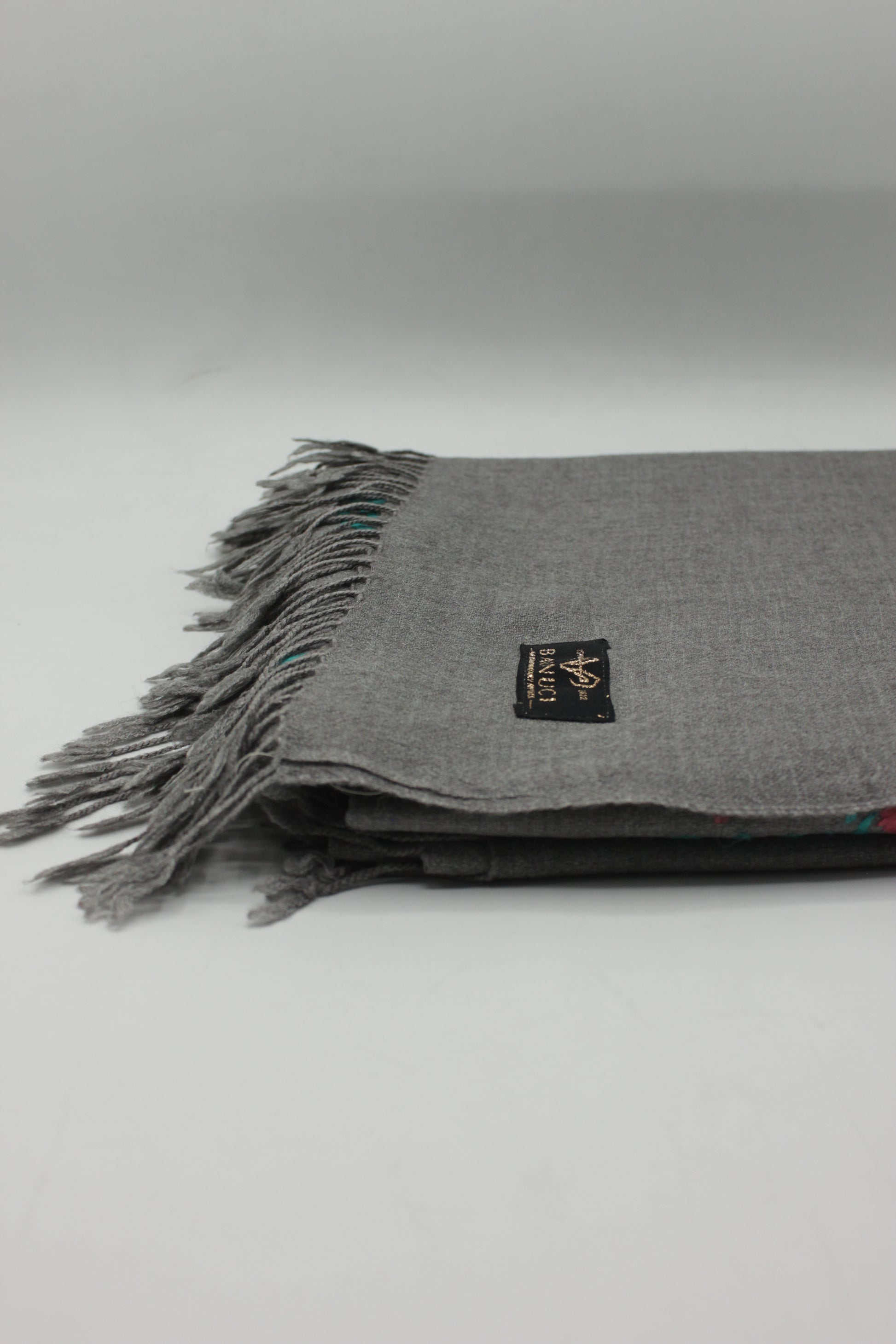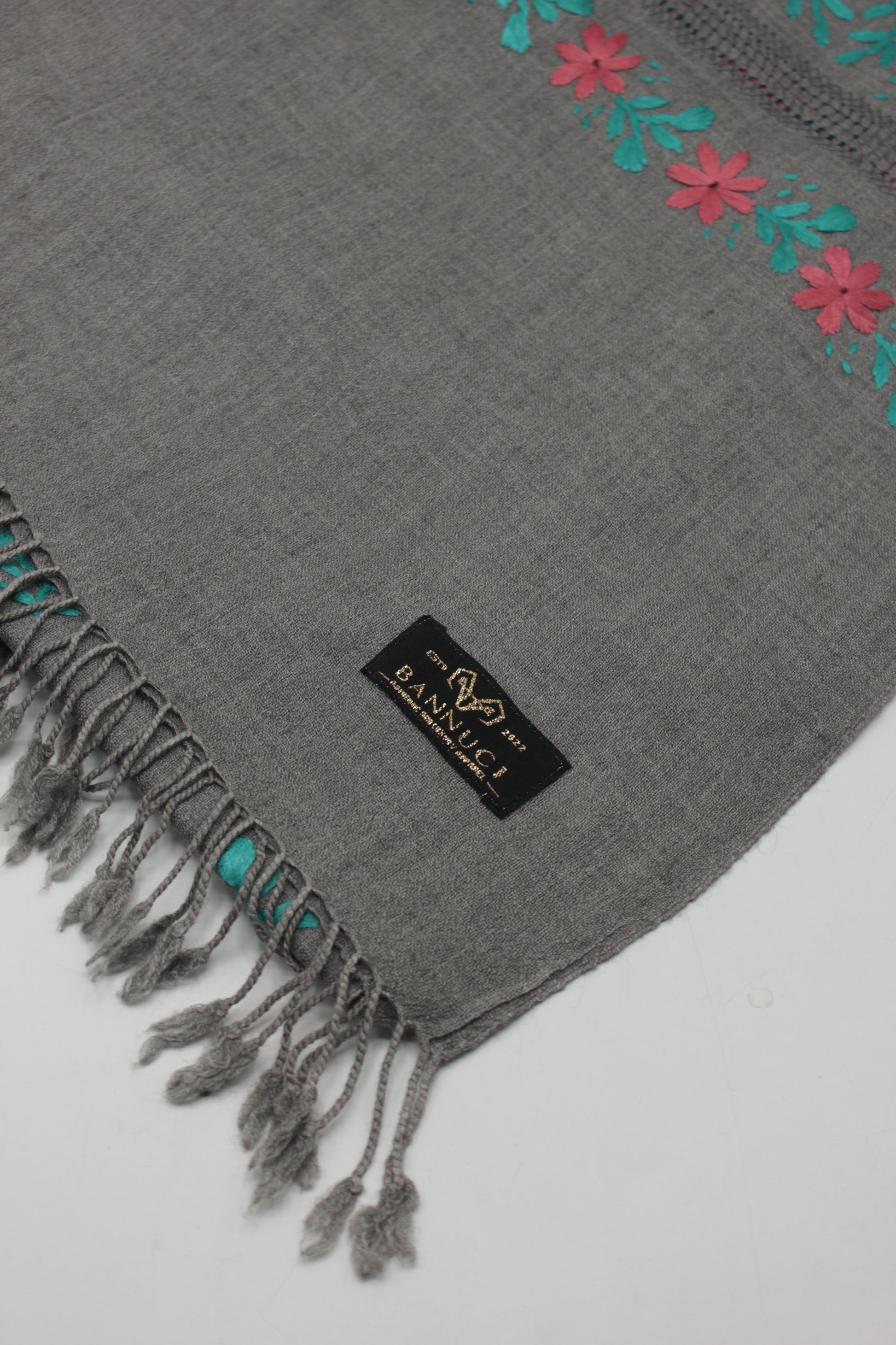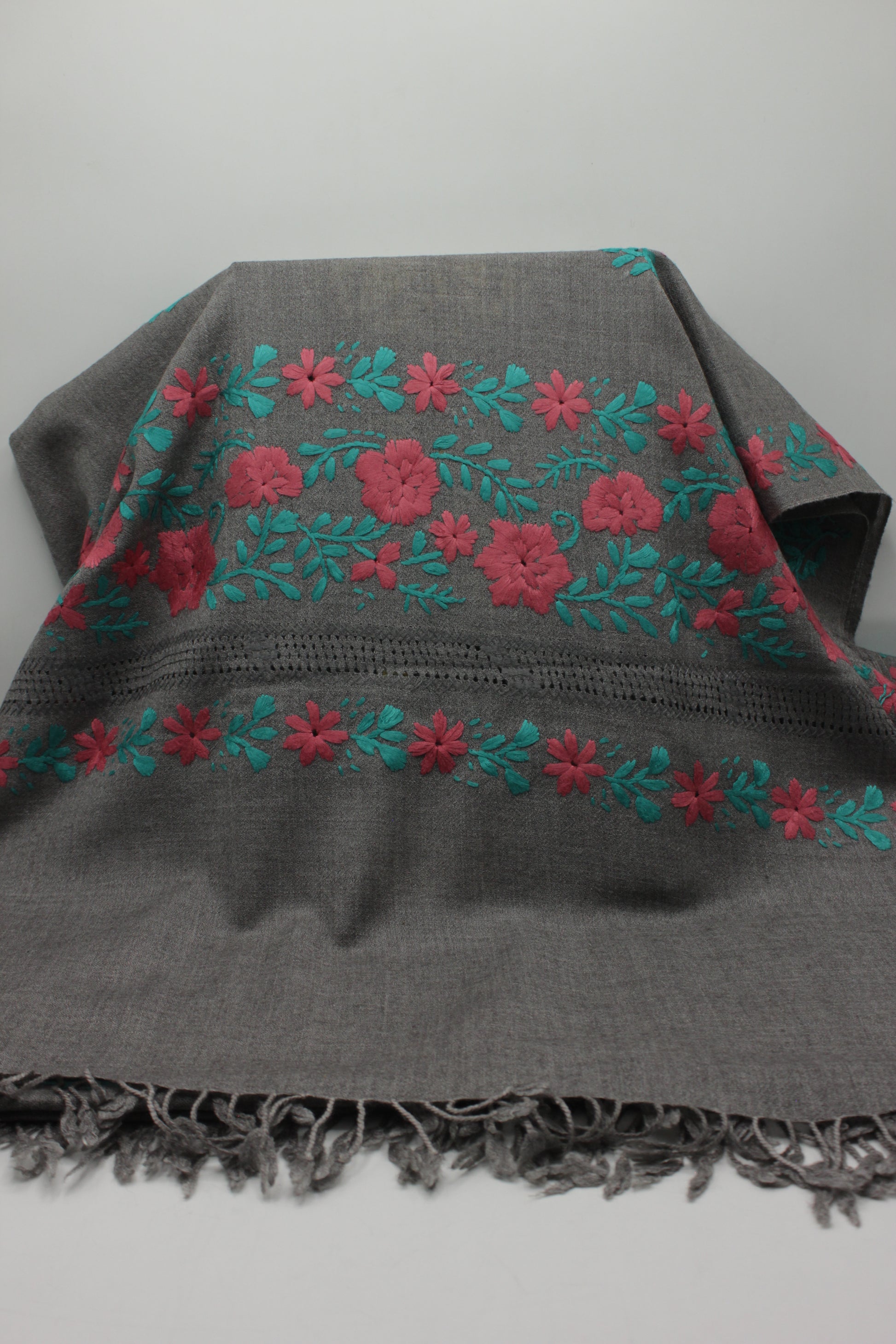 PREMIUM QUALITY GRAY HAND EMBROIDERY WOOLEN SHAWL FOR WOMEN