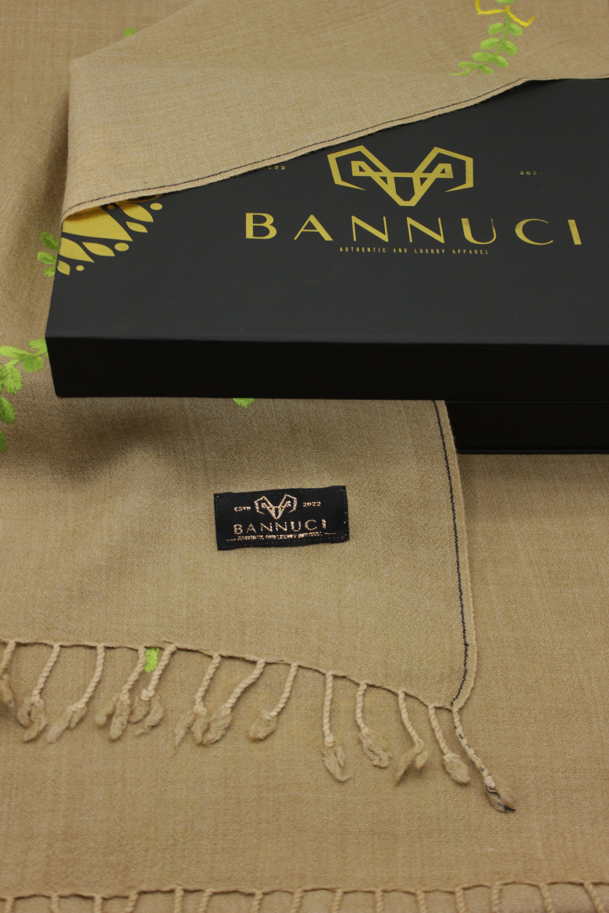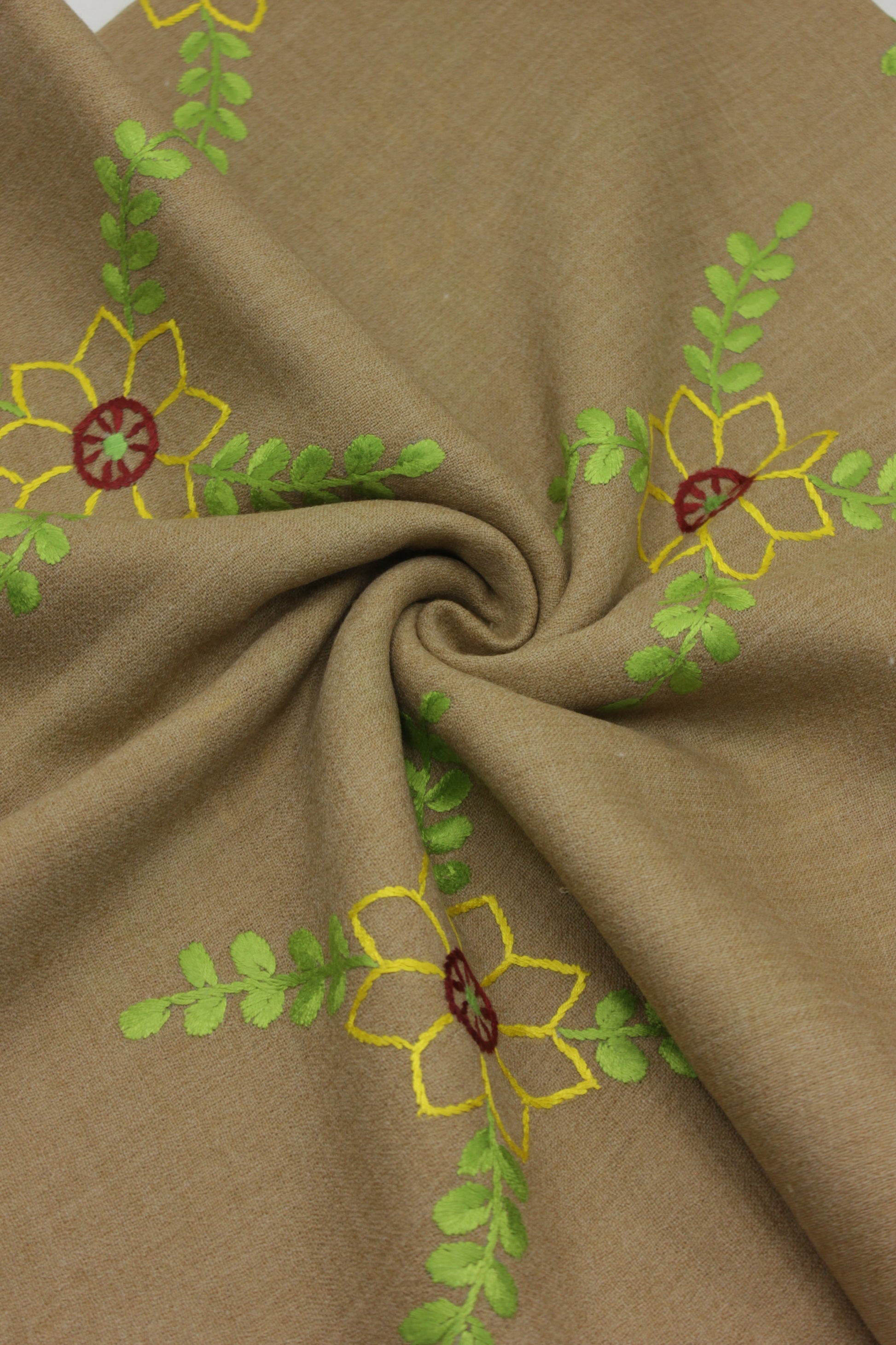 PREMIUM QUALITY LIGHT BROWN HAND EMBROIDERY WOOLEN SHAWL FOR WOMEN