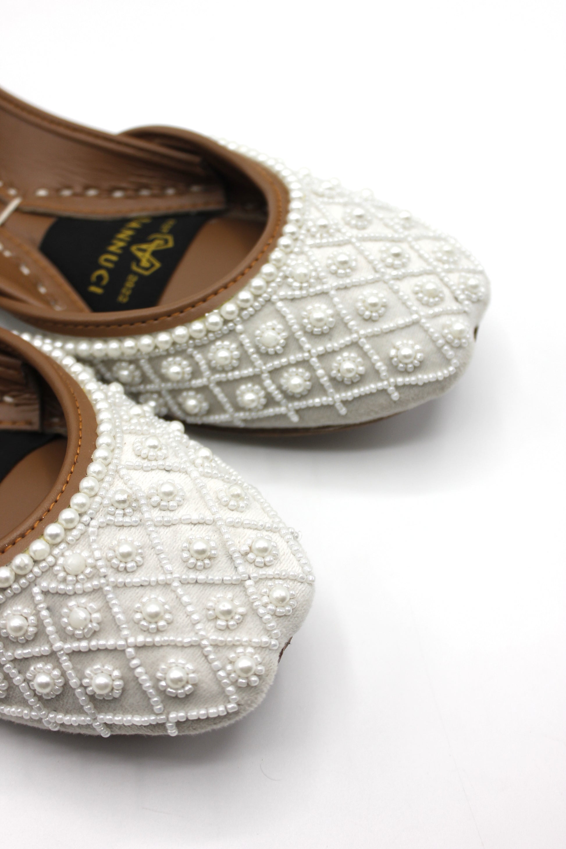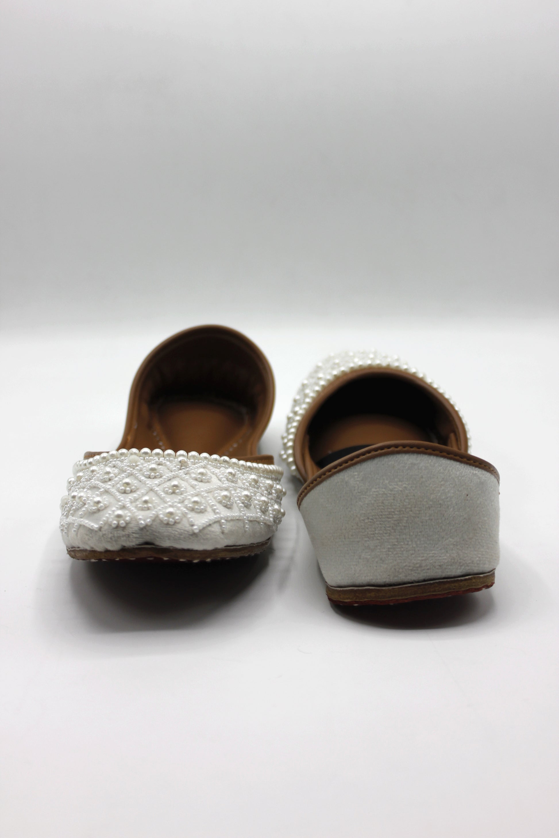 - For a Gentlelady and sophisticated look, try our Pearl Embellished Leather Khussas. This Embroidered Khussas online is made from soft leather and Leather sole, with a simple and elegant design. This Embroidered Khussas footwear is ideal for formal events, weddings, and celebrations