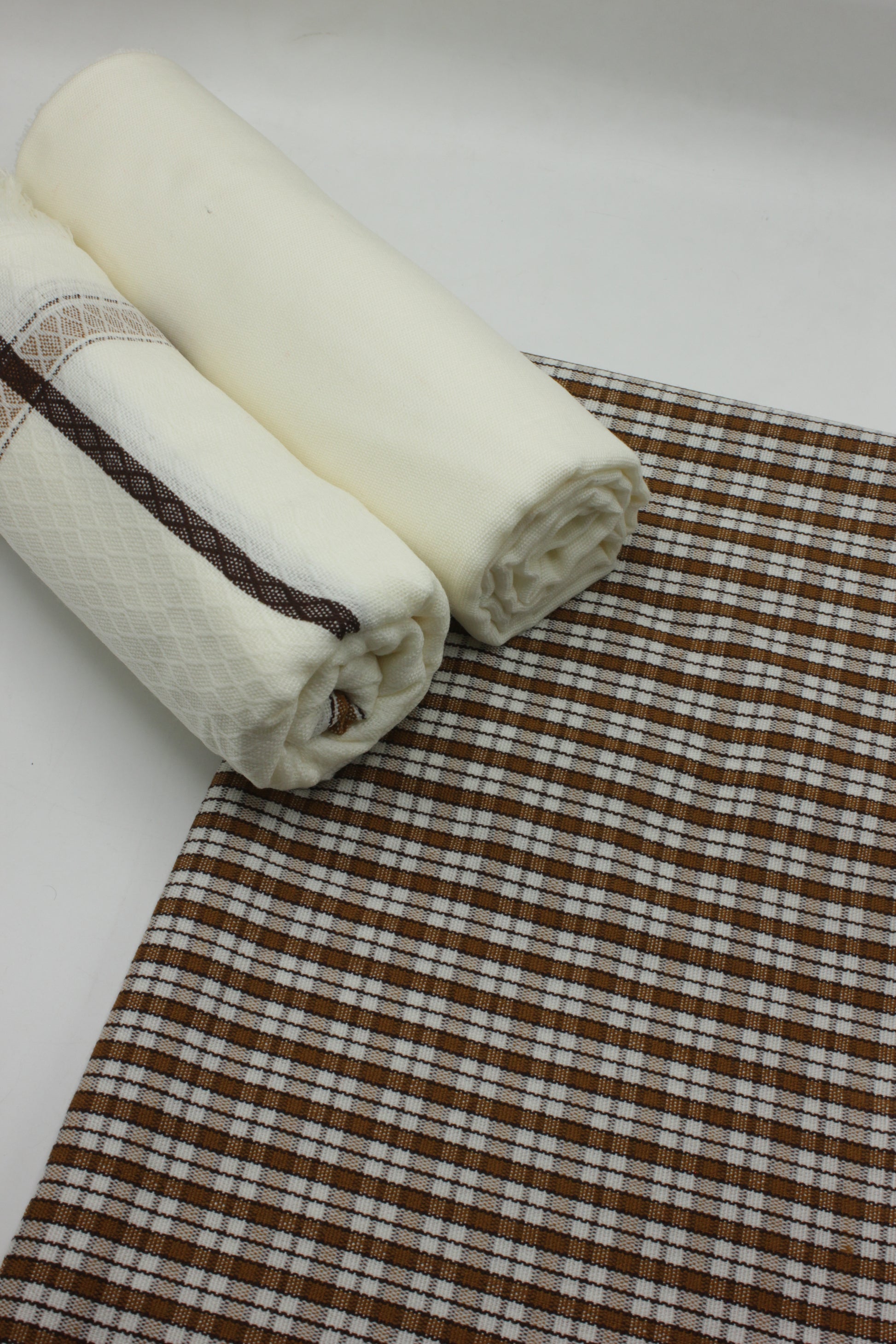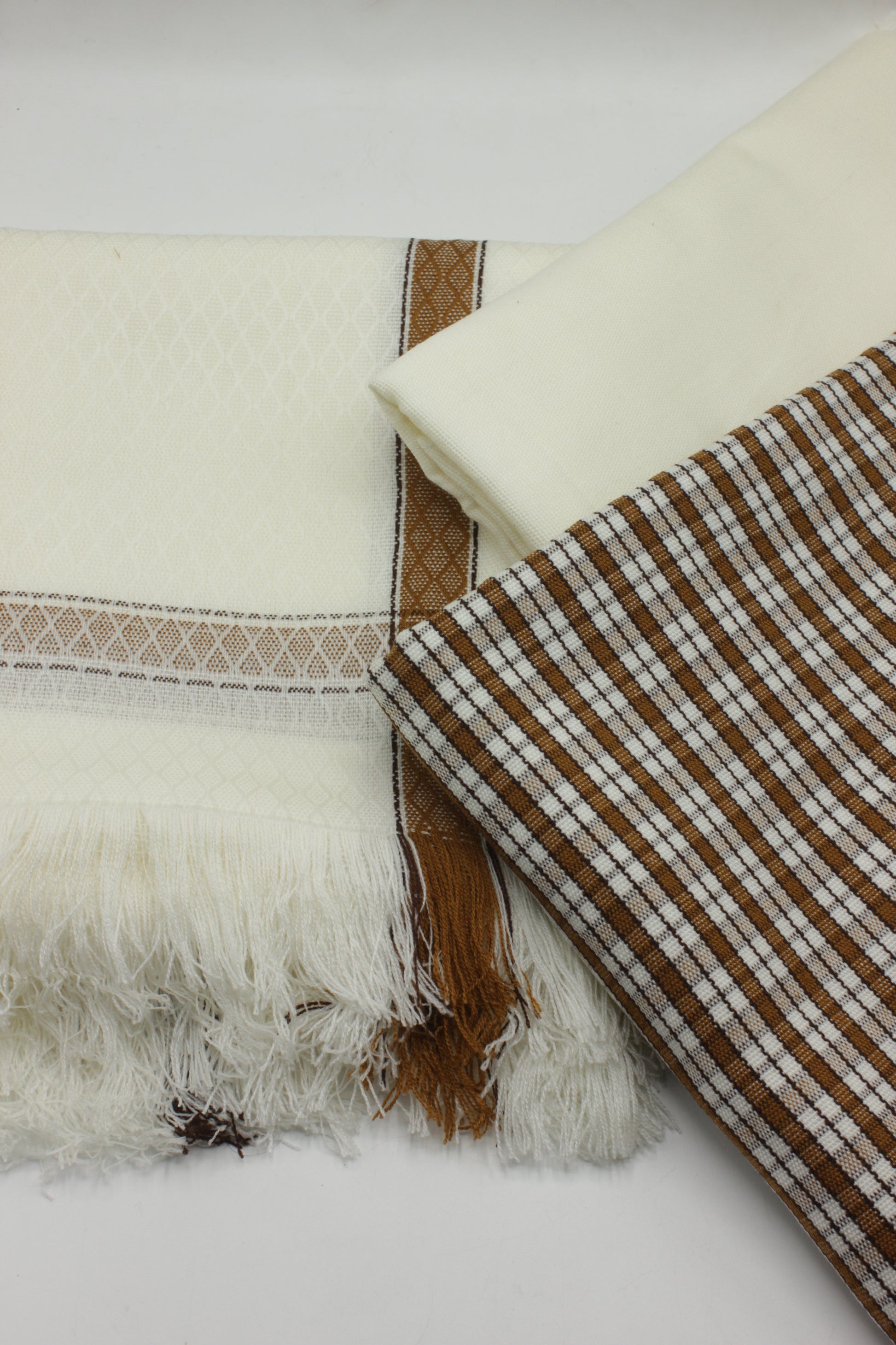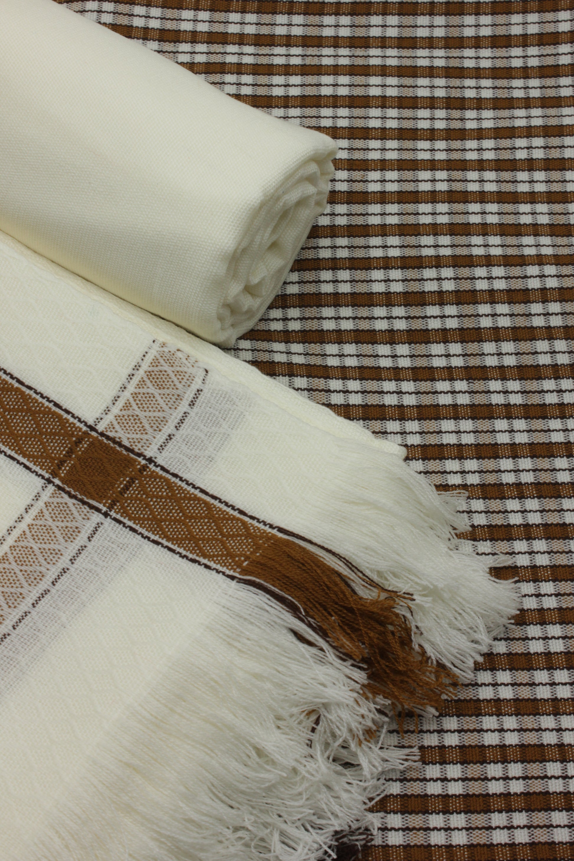 PREMIUM QUALITY OFF WHITE WITH BROWN BORDER PURE WOOLEN SUIT FOR WOMEN