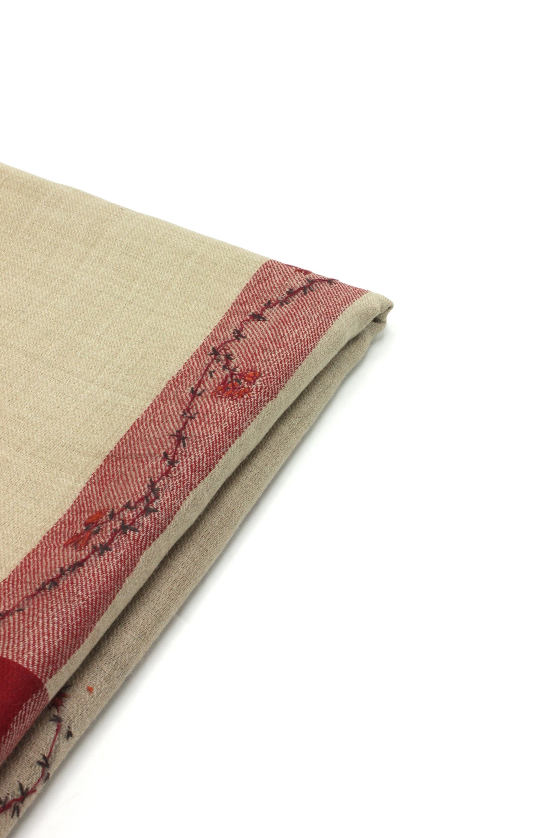 Premium Quality Beige with Red Embroidery Pashmina Cashmere Shawl
