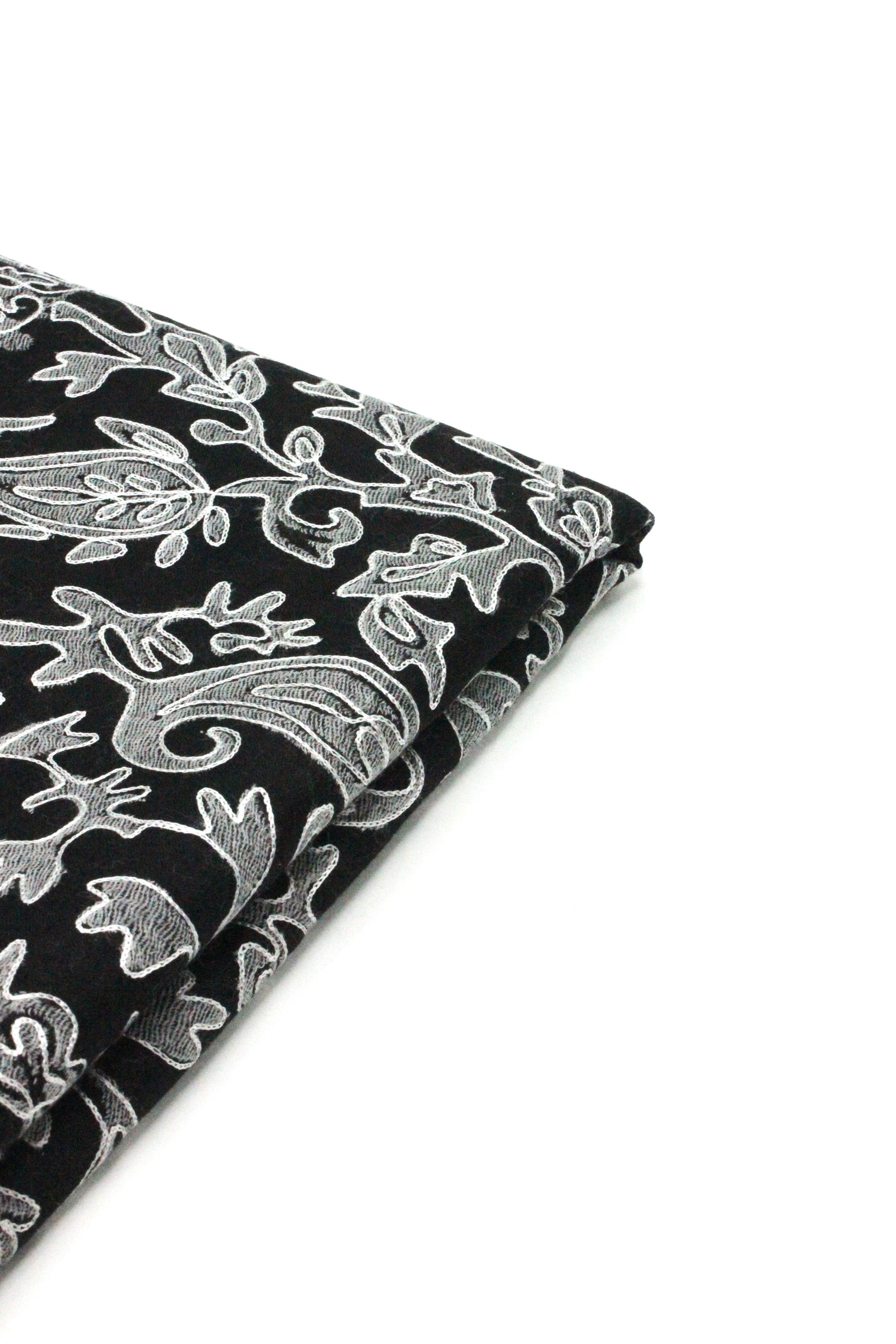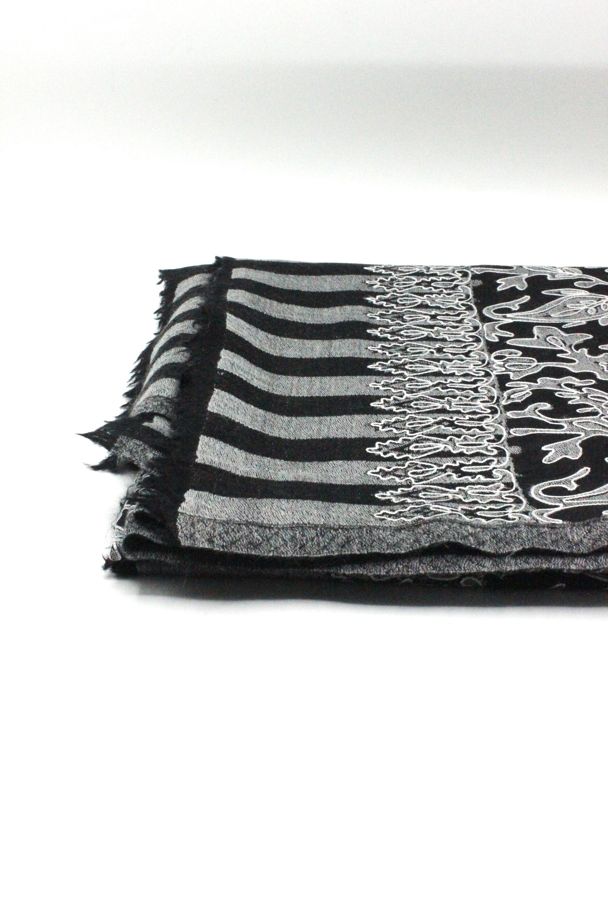 PREMIUM QUALITY BLACK WITH OFF WHITE EMBROIDERED PASHMINA CASHMERE SHAWL