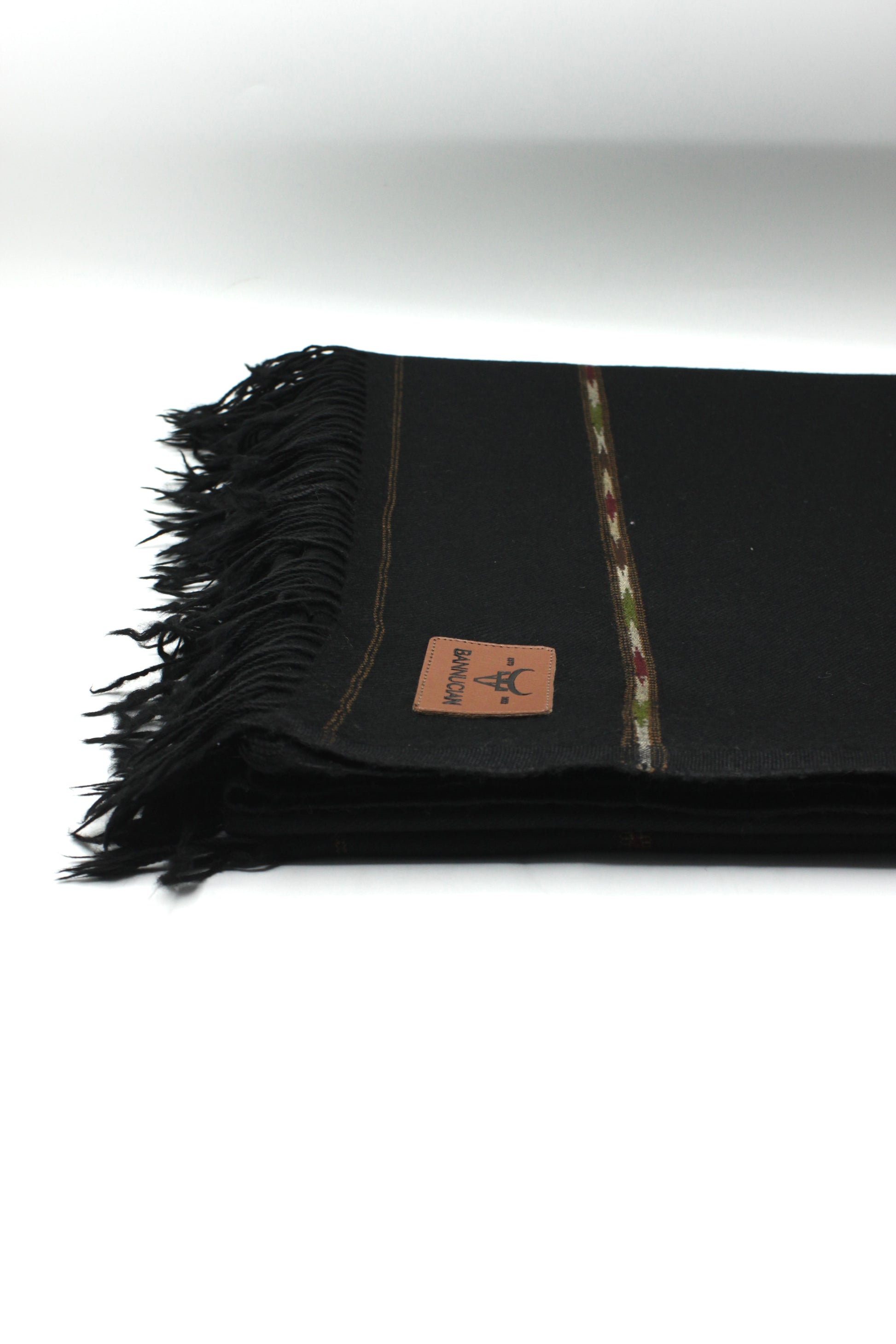 Premium Quality Double Fiber Black striped Pure Woolen Shawl