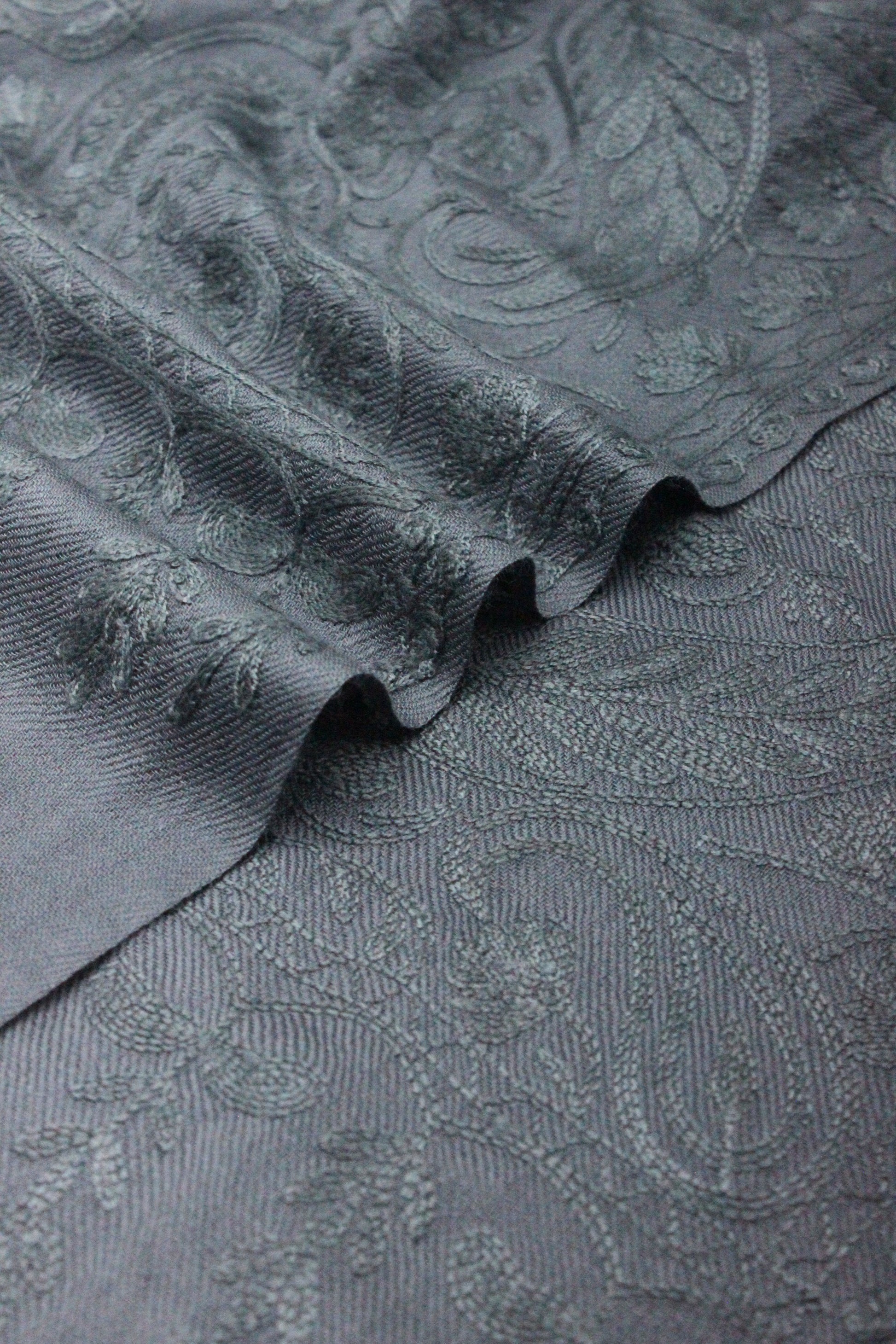 PREMIUM QUALITY GRAY EMBROIDERED PASHMINA CASHMERE SHAWL