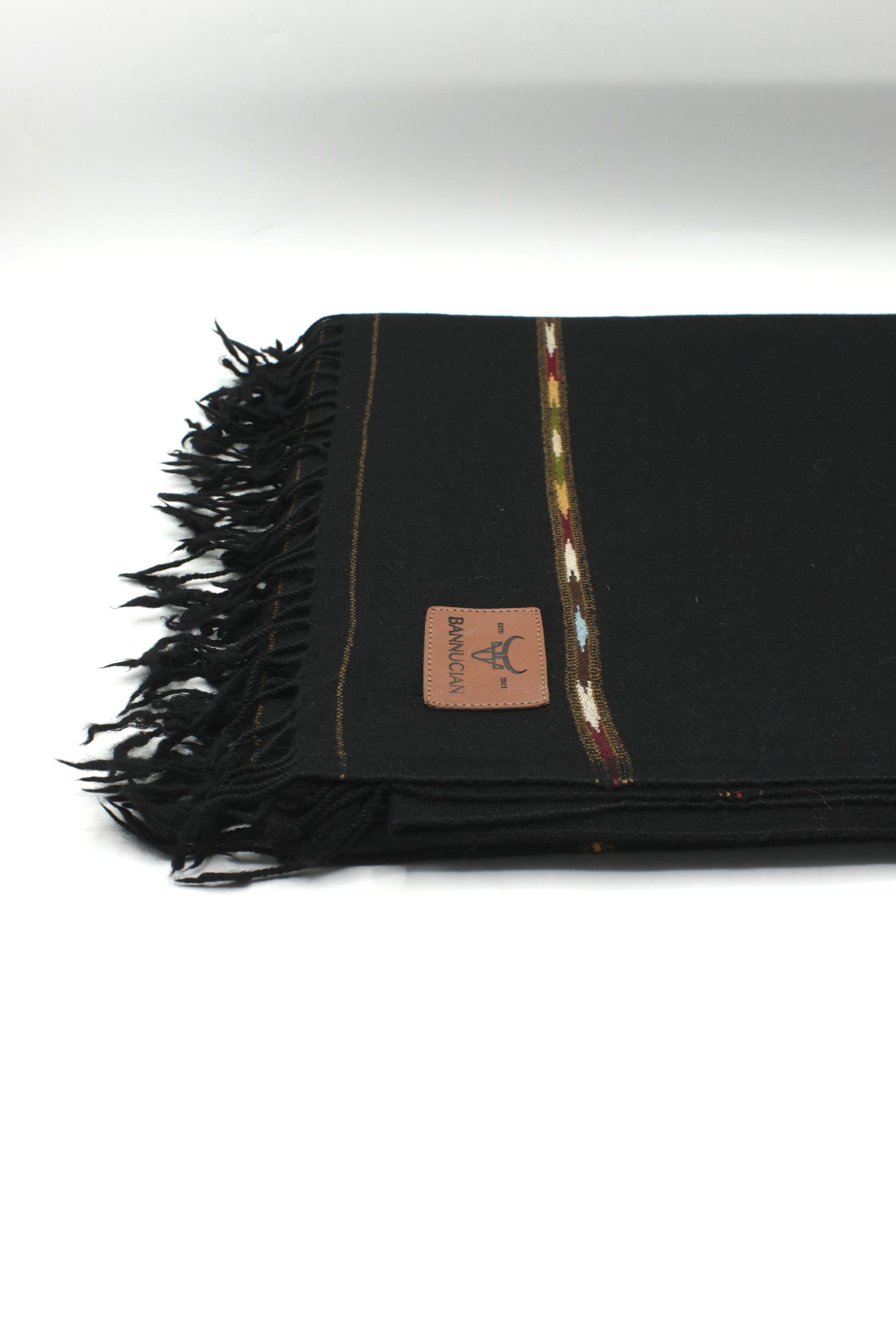Premium Quality Striped Jet Black Pure Woolen Shawl